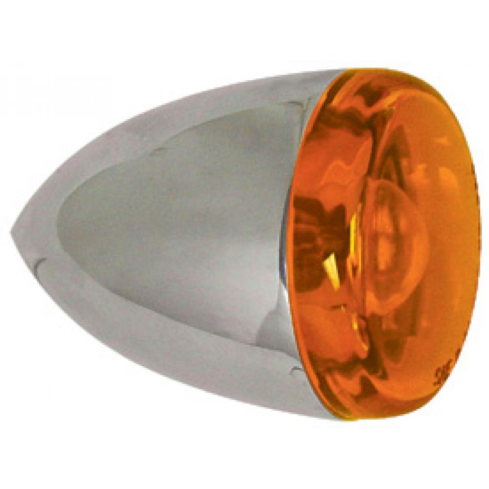 Front Chrome Plated Turn Signal with Amber Lens, Pointed Tail Style & Single Function Bulb Element