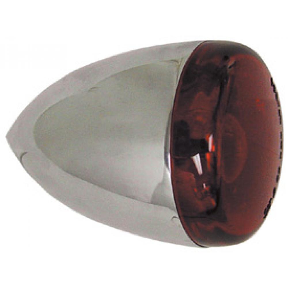 Front Chrome Plated Turn Signal with Red Lens, Pointed Tail Style & Dual Function Bulb element