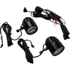 - The 2-3/8" diameter lens casts a bright white pool of light near the motorcycle and fills in the dark area between the bike and the low-beam headlamp pattern while 12 white LEDs illuminate as a constant on running light halo