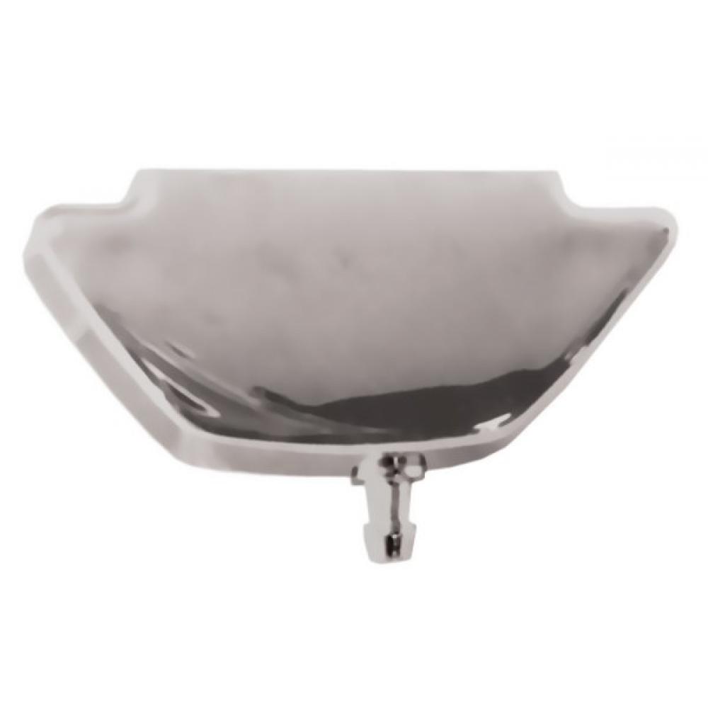 Rear brake master cylinder fluid reservoir replaces the unsightly stock black version with a chrome plated ABS plastic part that is equal in quality to the stock part.