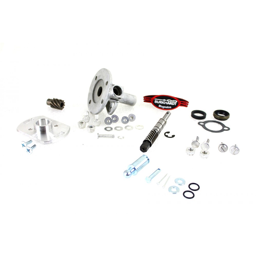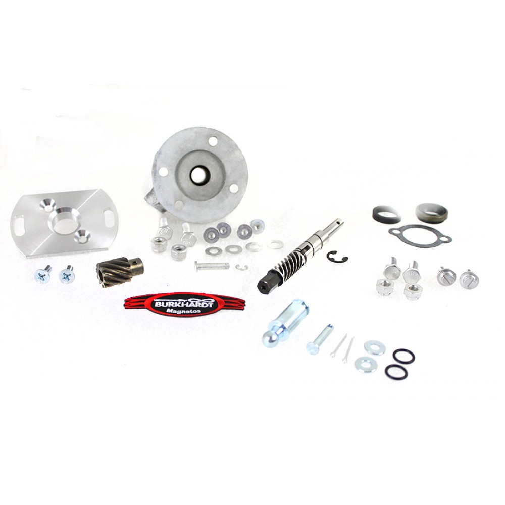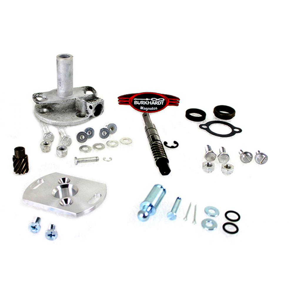 Magneto for a fixed application can be advanced or retarded to a fixed position with the slotted mount plate provided. Base kit is ready to mount to magneto head which is available separately.