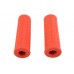 Replica orange waffle grips are soft rubber and have a 1-1/8 inch inner diameter on the throttle grip and 1 inch on the left grip. Grips have plug hole.