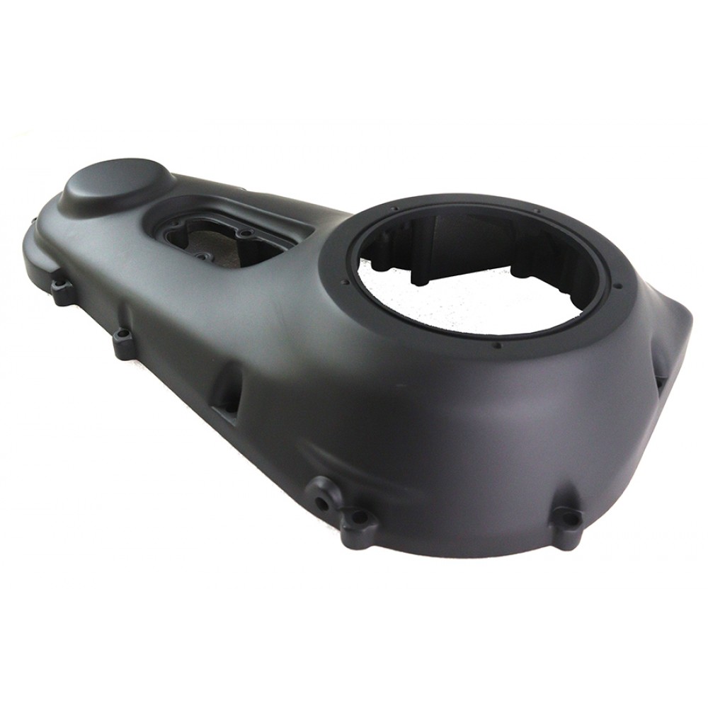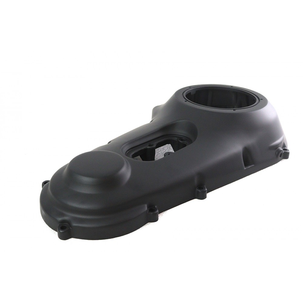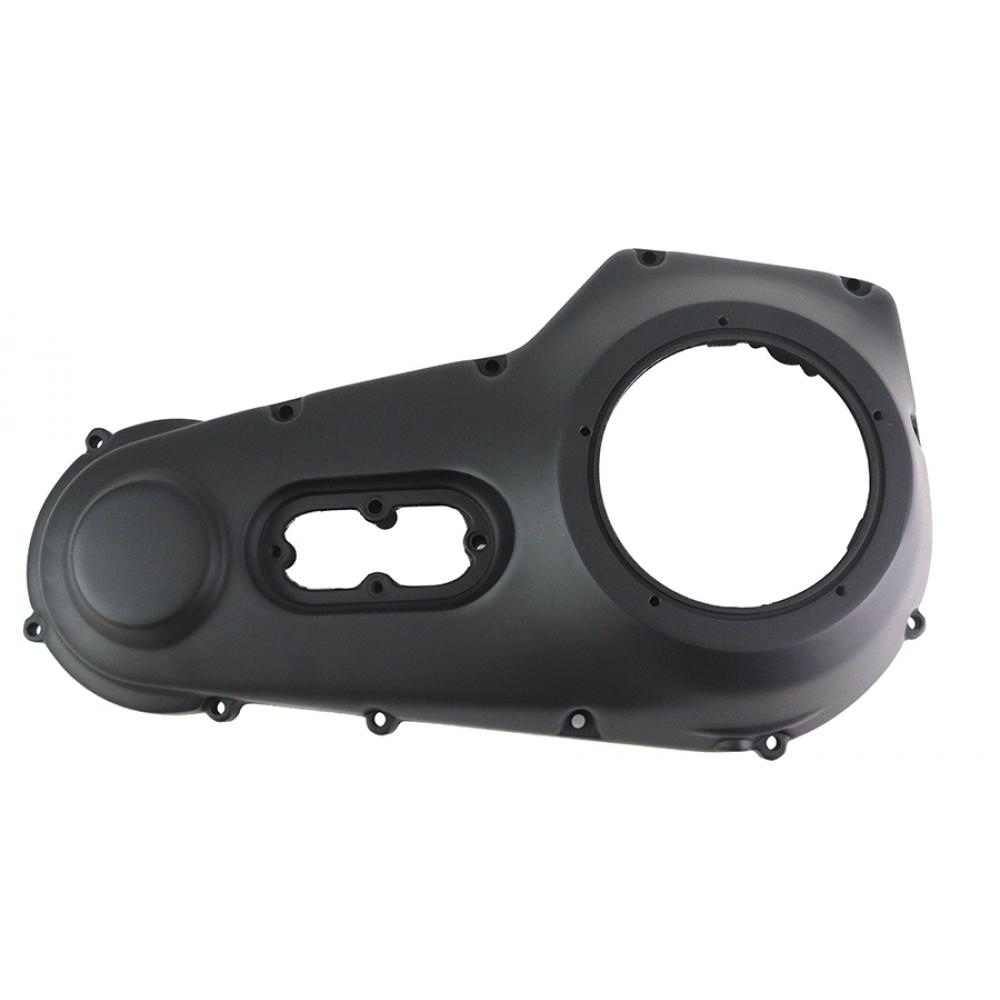 Black 5-speed outer primary cover is constructed of cast aluminum.