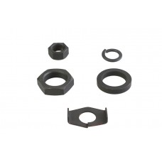 Parkerized rear axle nut and lock kit for 1930-1972 Big twins. This 5 piece kit includes sleeve nut, collar, axle nut, lock washer, and lock clip.